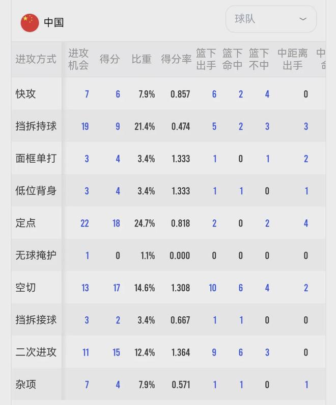 中国男篮一路坚持内线强攻,效果很一般,不仅自身得分效率很低,还让对手打了很多反击。