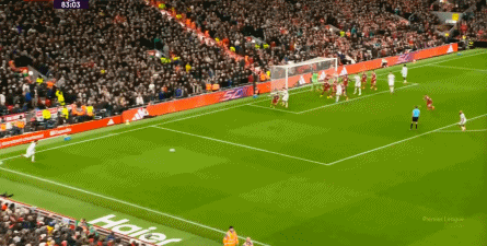 利物浦的这个进球,来自于定位球进攻结束之后的抢断形成的二次进攻,而定位球的出现,其实源自于德里赫特的一次不佳解围: